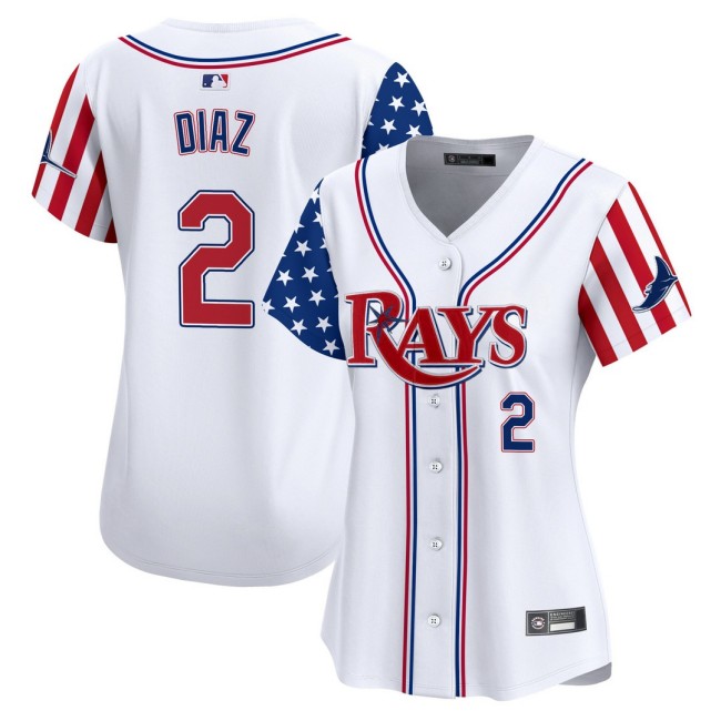 - Women's TB Rays #2 Yandy Diaz Nike White 2025 Independence Day MLB Baseball Limited Jersey - All Stitched