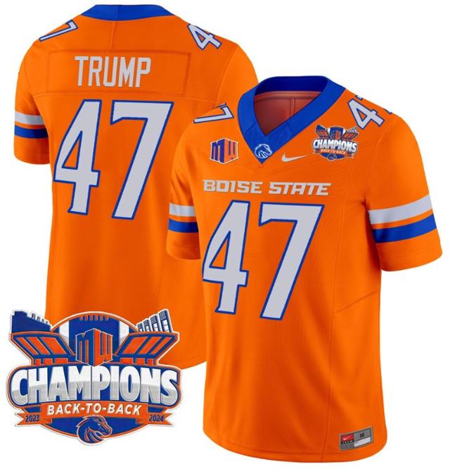 - Men's Nike Donald Trump Jersey #47 Boise State Broncos Back To Back Champions Patch F.U.S.E. Vapor Limited Stitched College Football Orange Alternate