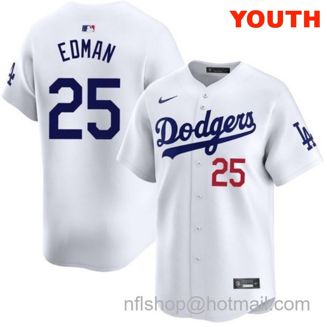 - Tommy Edman Los Angeles Dodgers Youth Home White Cool Base Stitched Baseball Jersey
