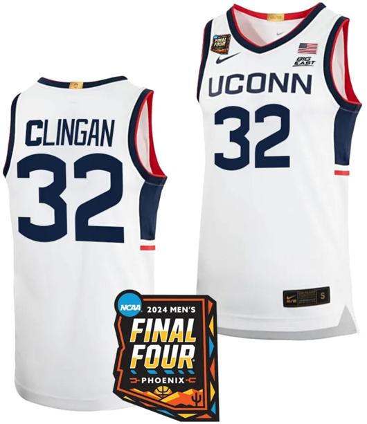 - Men's Donovan Clingan Jersey #32 UConn Huskies Basketball 2024 NCAA March Madness Final Four White