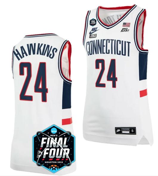 - Men's Jordan Hawkins Jersey UConn Huskies 2023 NCAA National Championship March Madness White #24
