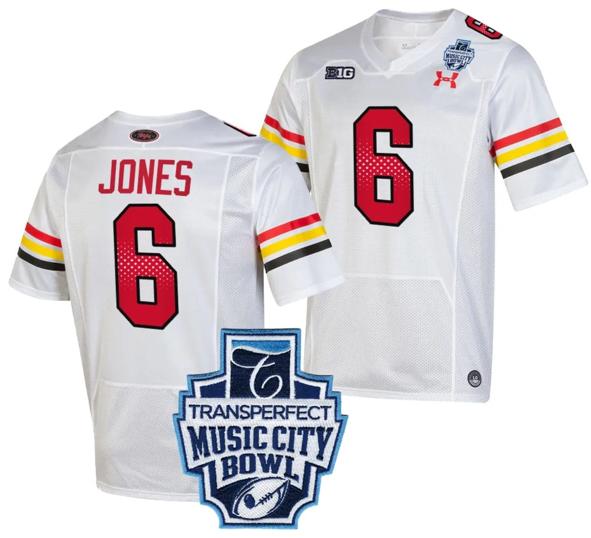 - Men's Jeshaun Jones Jersey #6 Maryland Terrapins 2023 Music City Bowl Patch Football White