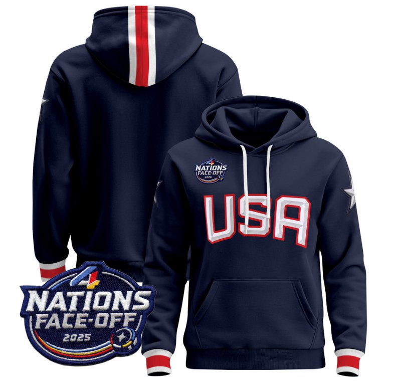- Men's Team Hoodie USA 4 Nations Face-Off 2025 Pullover Stitched Navy
