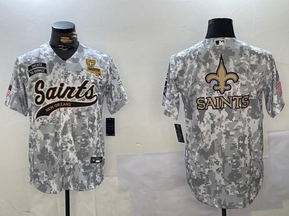 - Men's New Orleans Saints Team Big Logo 2024 Arctic Camo Salute To Service Stitched Baseball Jersey