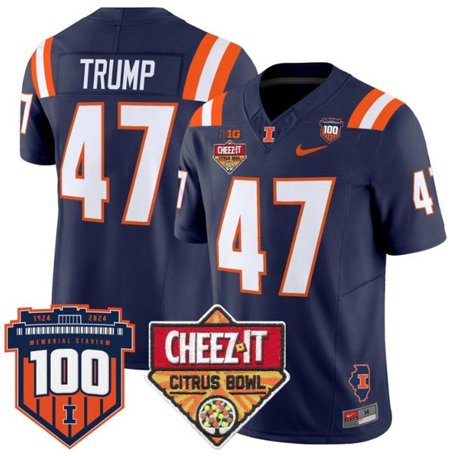 - Men's Nike Donald Trump Jersey #47 Illinois Fighting 2025 Cheez-It Citrus Bowl Patch F.U.S.E. Vapor Limited Stitched College Football Navy