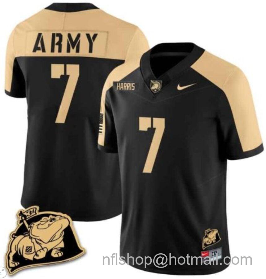 - Men's Nike Champ Harris Jersey #7 Army Black Knights Jersey Rocky The Bulldog Patch Vapor Limited College Football Stitched Black Alternate
