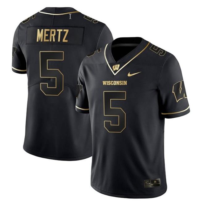 - Men's Graham Mertz Jersey #5 Wisconsin Badgers Gold Vapor College Football Black Limited