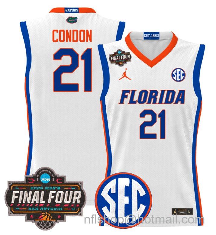 - Men's Alex Condon Jersey #21 Florida Gators 2025 Final Four Patch Stitched White Gold