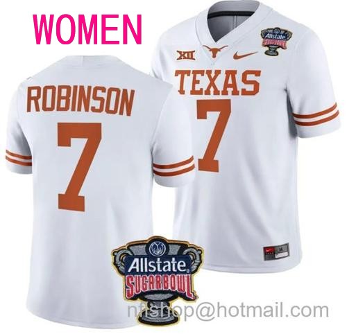 - Women's Keilan Robinson Jersey #7 Texas Longhorns Allstate Sugar Bowl Patch 2024 College Football Orange