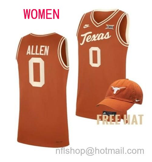 - Women's Timmy Allen Jersey Texas Longhorns College Basketball 2023 NCAA March Madness White #0