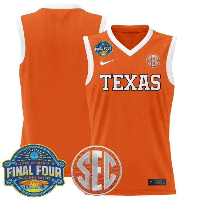 - Women's Nike Taylor Jones Jersey #44 Texas Longhorns 2025 NCAA Women's Basketball Sec Final Four Patch Orange
