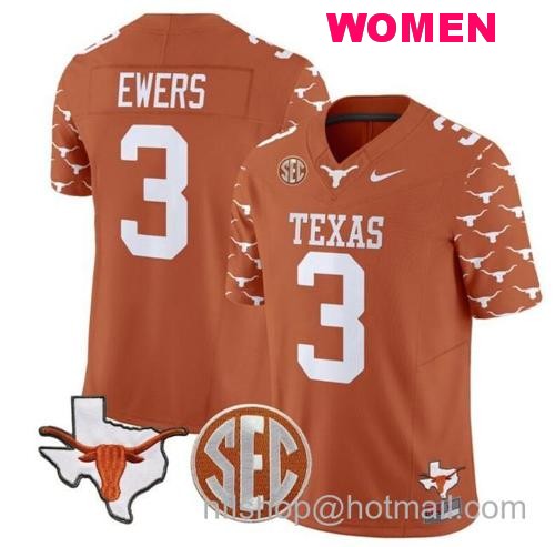 - Women's Quinn Ewers Jersey #3 Texas Longhorns State Map and Sec Patch Vapor Limited College Football Stitched Orange Alternate