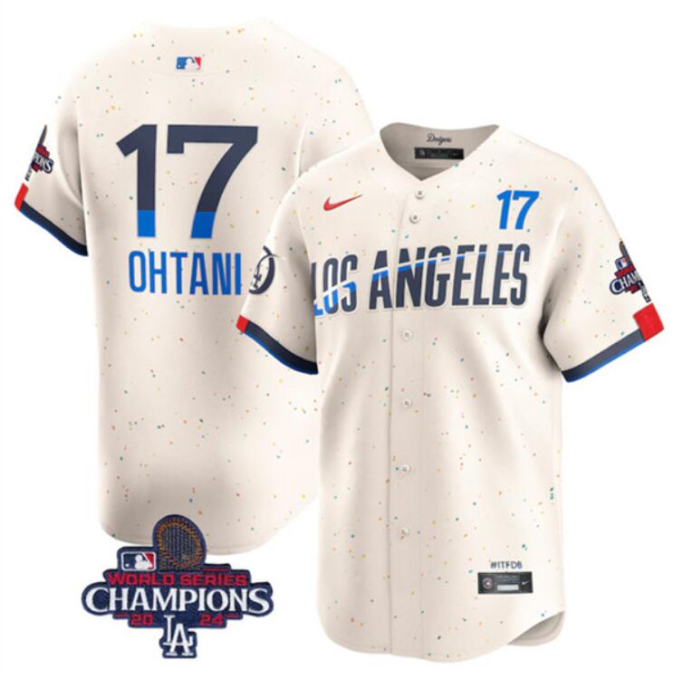 - Youth Los Angeles Dodgers #17 Shohei Ohtani White Gold 2024 World Series Home Limited Stitched Baseball Jersey