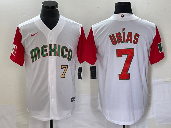 Julio Urias Men's Mexico Baseball #7 Number 2023 World Classic Stitched Jersey 36 - White Red